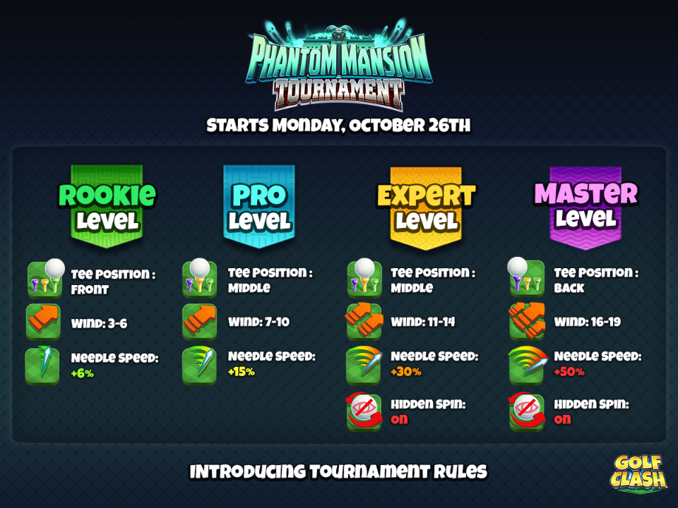 Get your practice in from Thursday 22nd of October!The brand new Phantom Mansion course will be available to play in tours 4, 8 and 11 (6 Star Hotel, Mountain Tour and Voyager Tour).