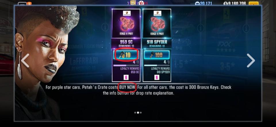 There is currently a display issue on the Petah’s Crate introduction panel. It displays crate costing BUY NOW, this is purely a display issue and the correct cost will show in your parts crate section.We have also noticed that one of the images in the in game news panel shows a cost of 10 gold keys. This is purely an image to display how the crates look, and does not reflect the crate cost.Petah’s Crate cost relate to:Bronze Keys per spinIn App Purchase per spinApologies for any confusion this may cause.